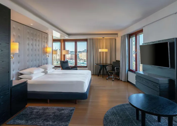 Hilton Stockholm Slussen erbjuder panoramautsikt och ligger centralt mellan Södermalm och Gamla Stan. Hotellet har eleganta rum, gym och bastu som alla familjer kan njuta av. Det är också nära till många av stadens attraktioner.