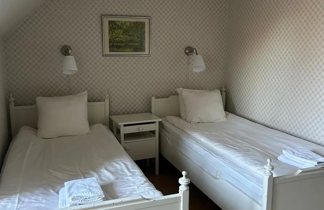 I de privata badrummen finns en separat toalett och en dusch samt bekvämligheter som badlakan och handdukar.